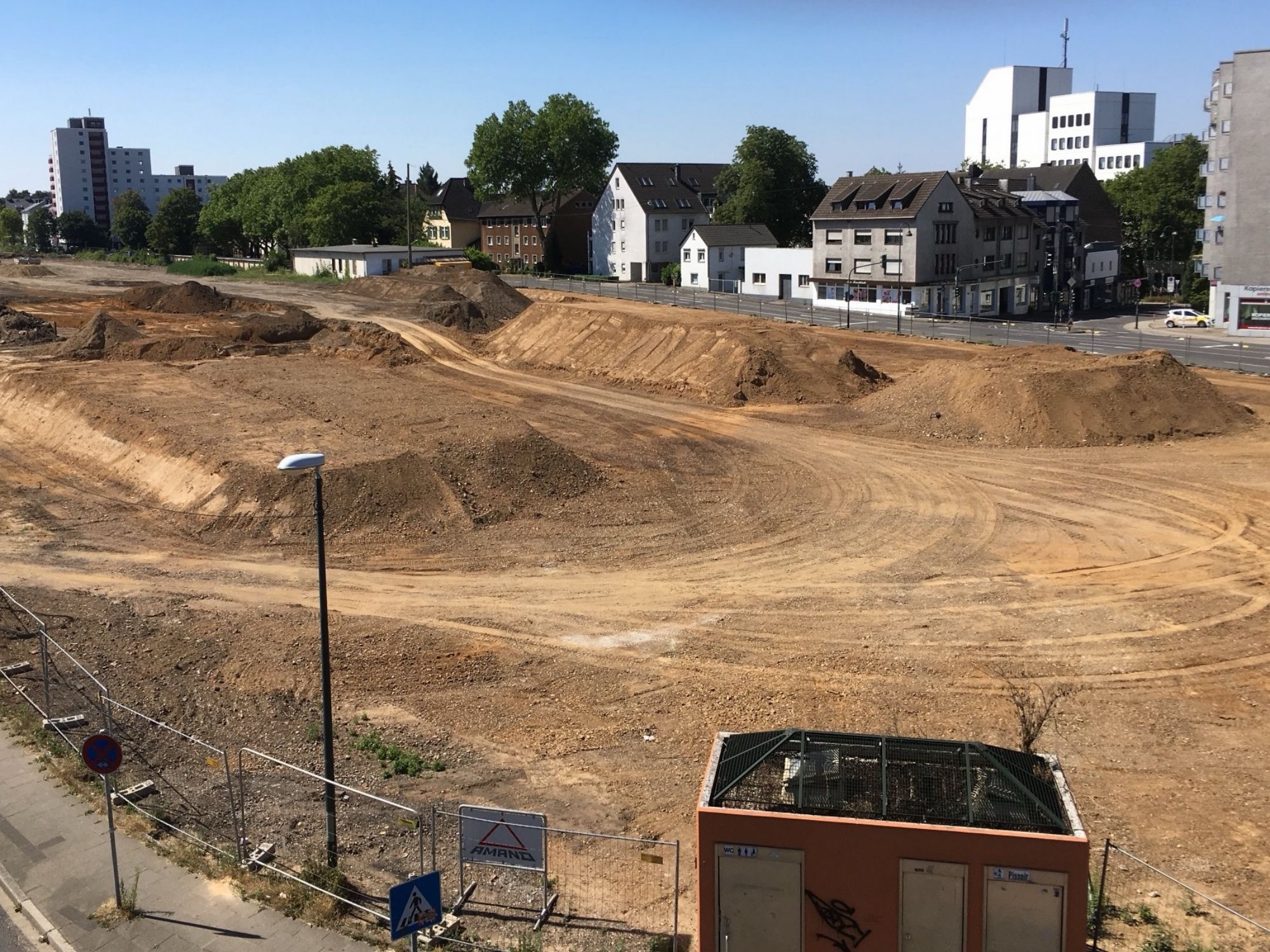 Bau der Europa-Allee mit Lärmschutzwand in Vorbereitung auf weitere infrastrukturelle Verbesserungen.