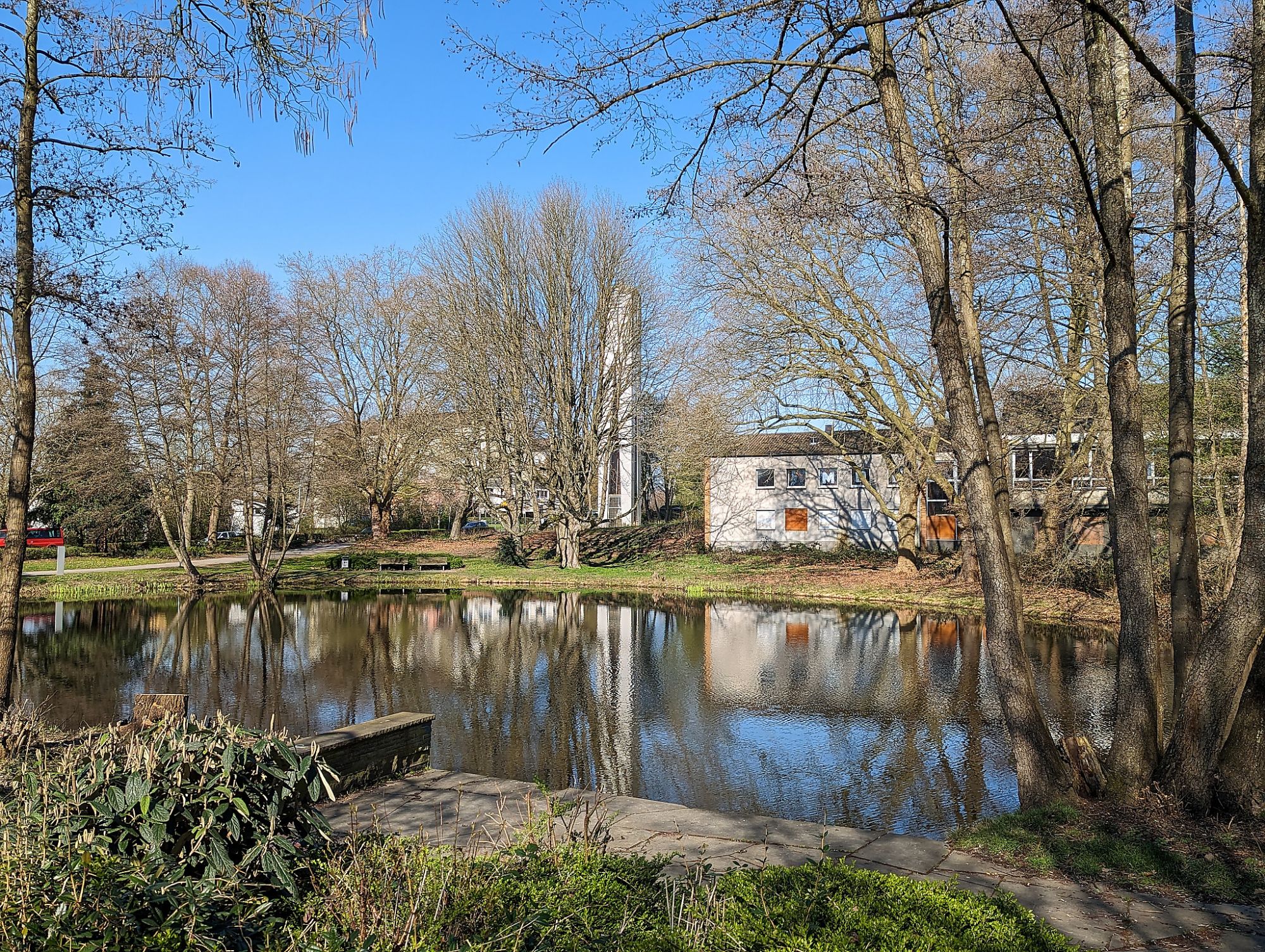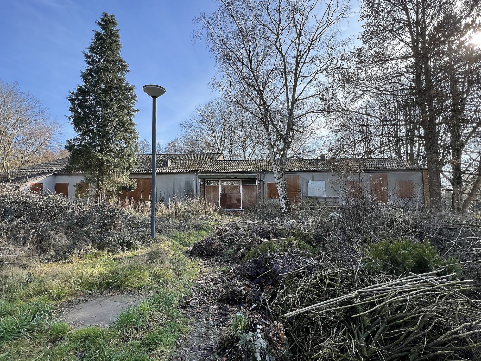 Ein kommendes Neubauprojekt fordert viel Raum und wird den Stadtteil prägen. Ev. Gemeindehaus und Natur werden weichen, um Platz für ein großes ReHa-Zentrum zu schaffen (im Jahr 2025 noch kein Baubeginn in Sicht).