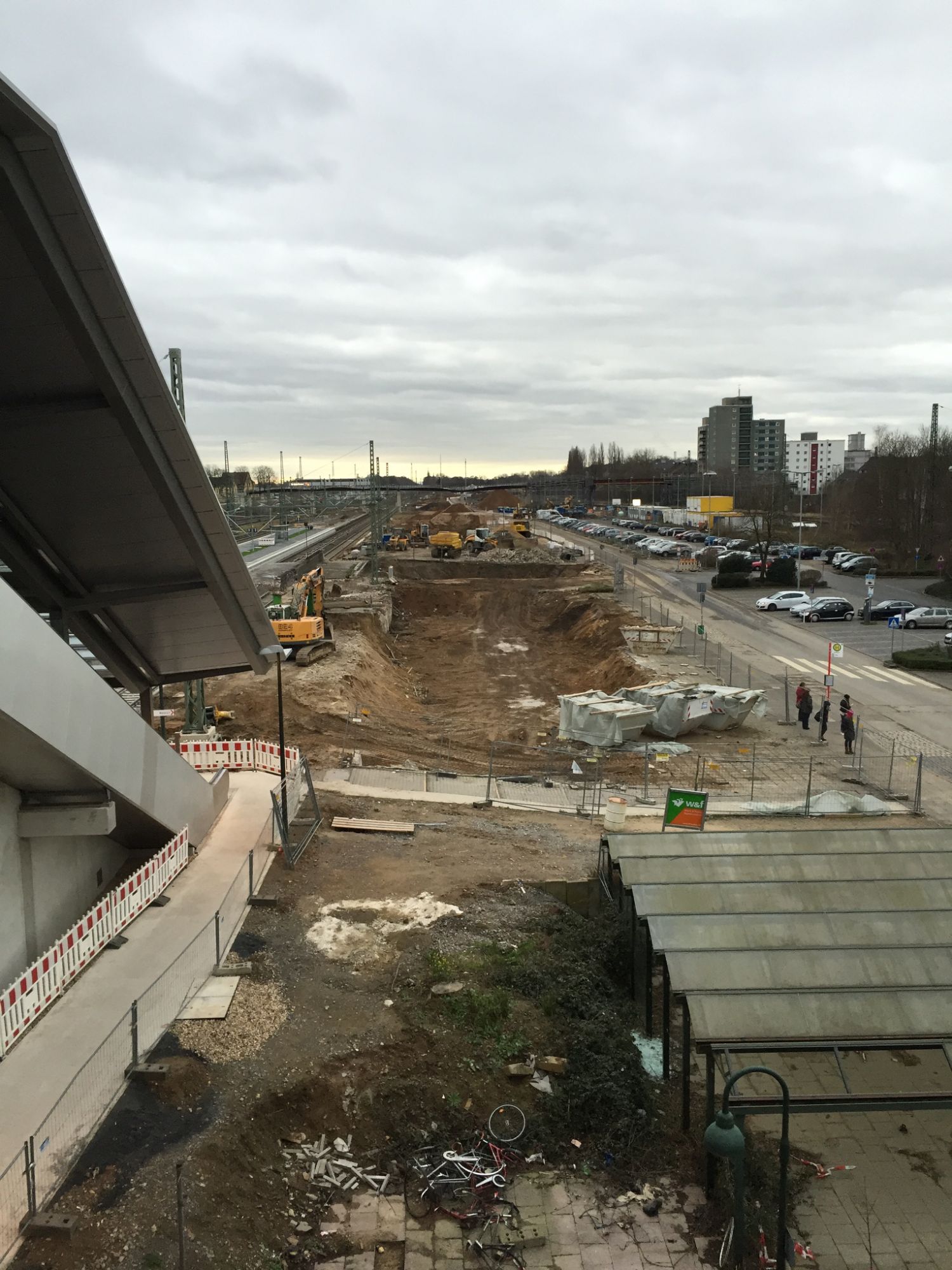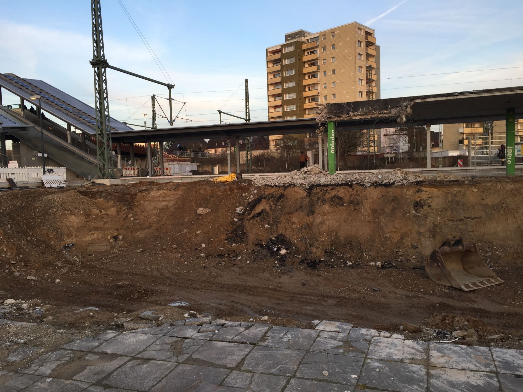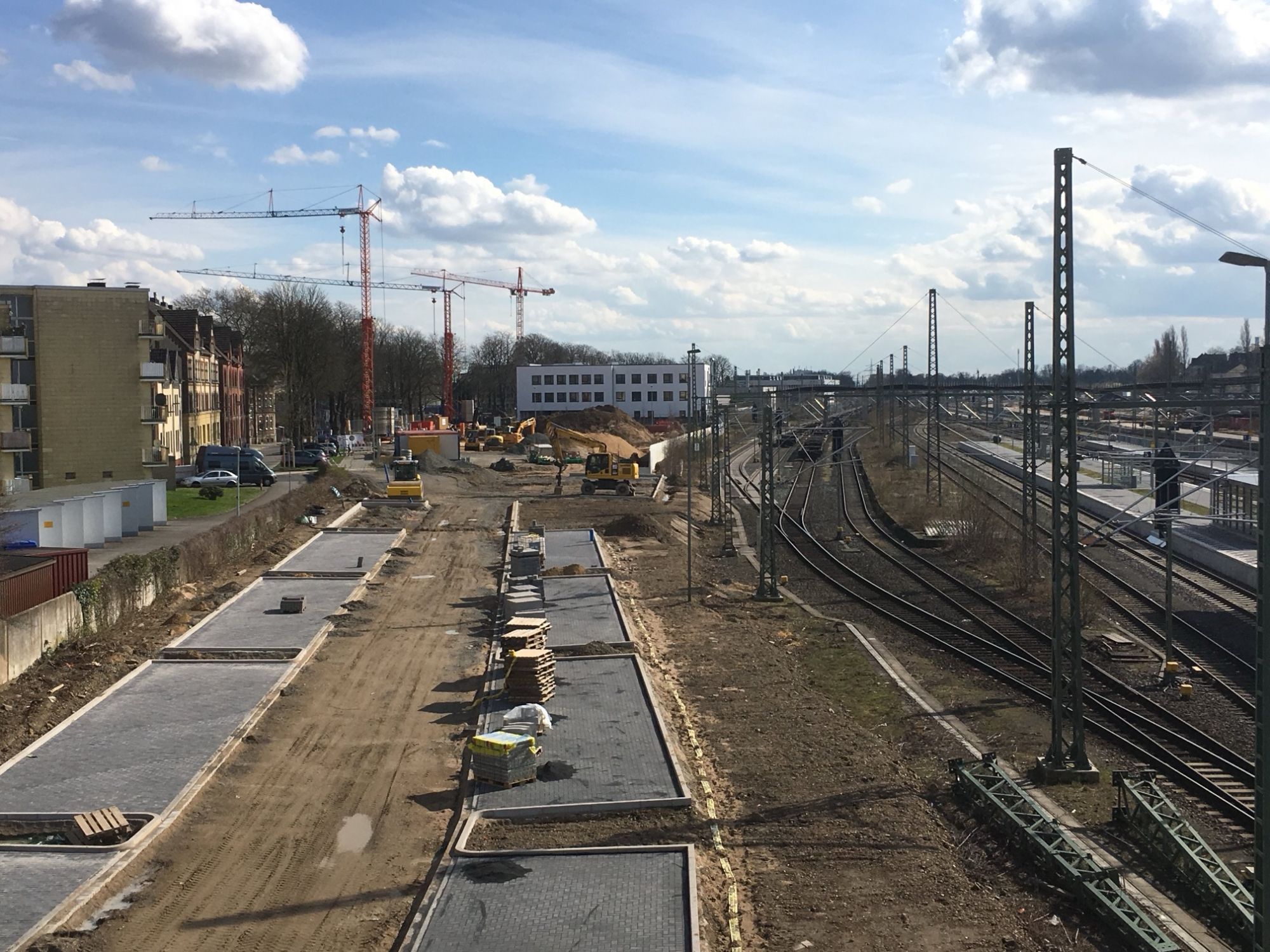 Baufeldfreimachung Westseite (10/2018–9/2019): Entfernen alter Gleisanlagen, Schotter und Fundamente zur Vorbereitung auf neue Bautätigkeiten.