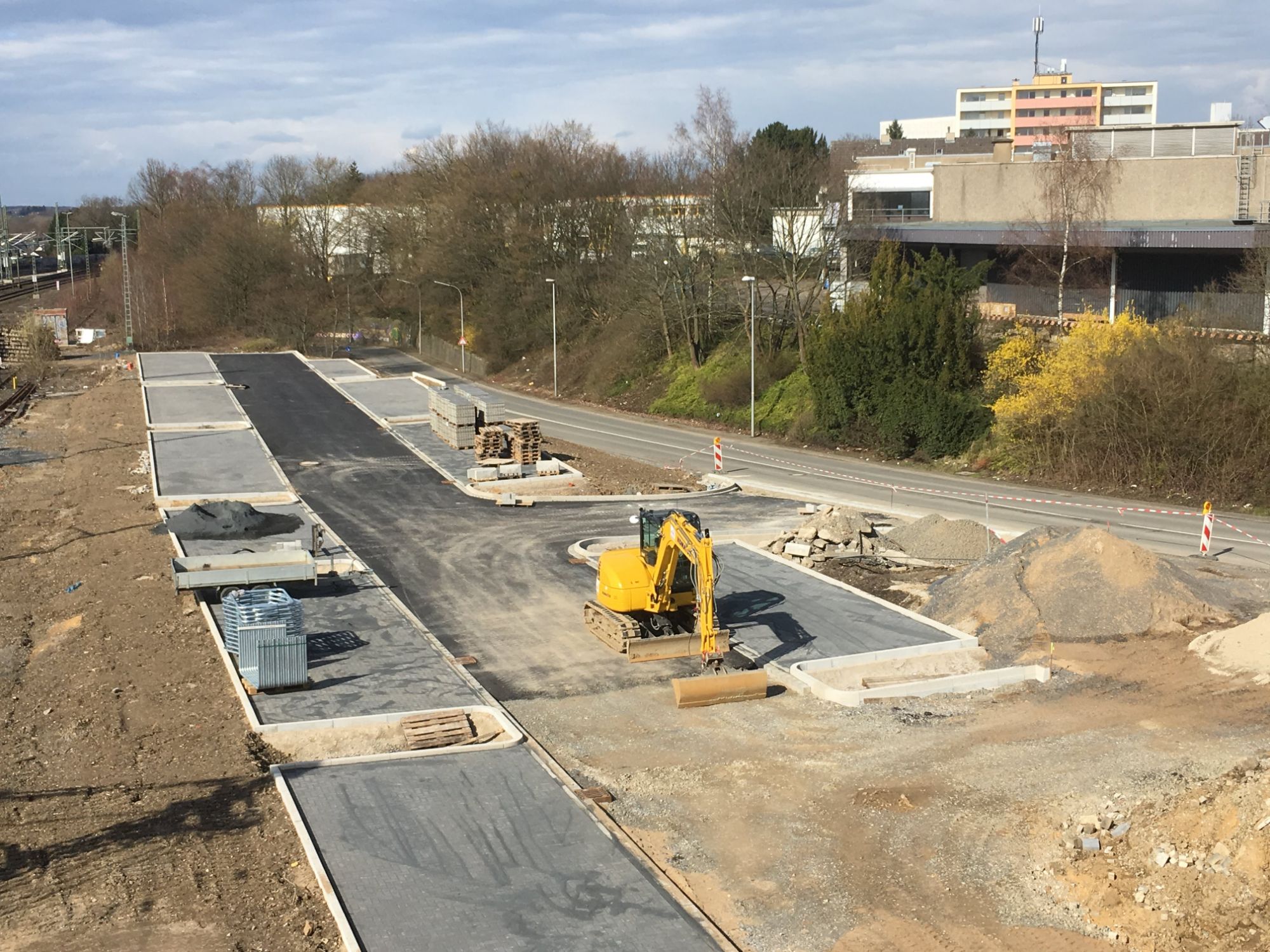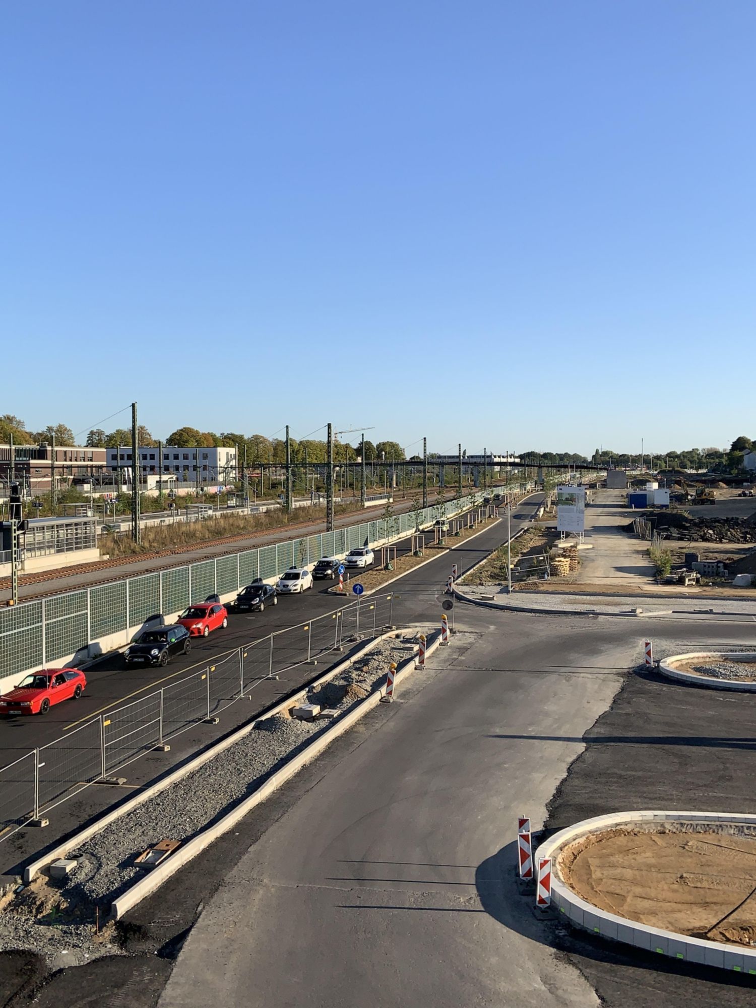 Bau der Europa-Allee mit Lärmschutzwand in Vorbereitung auf weitere infrastrukturelle Verbesserungen.