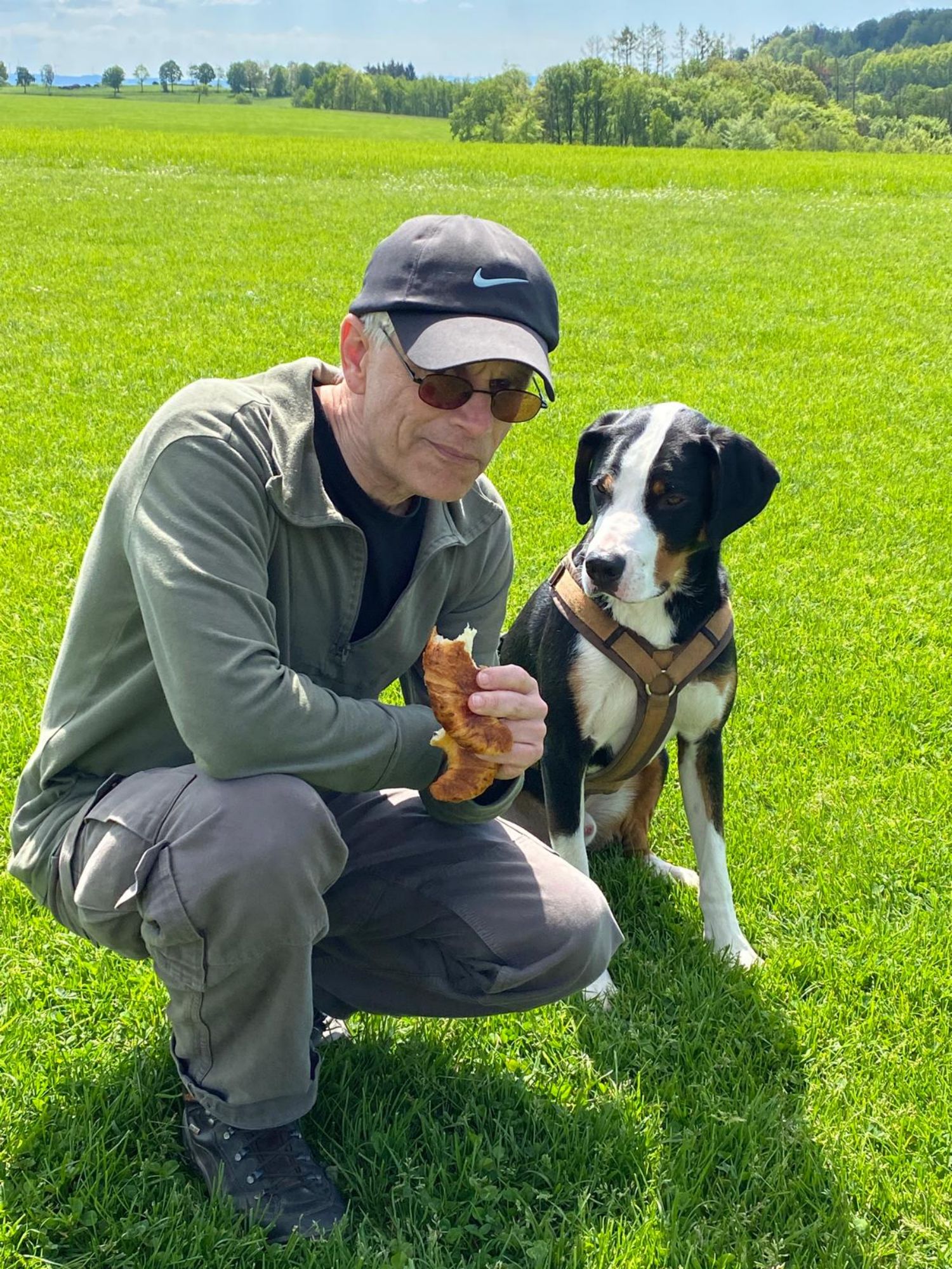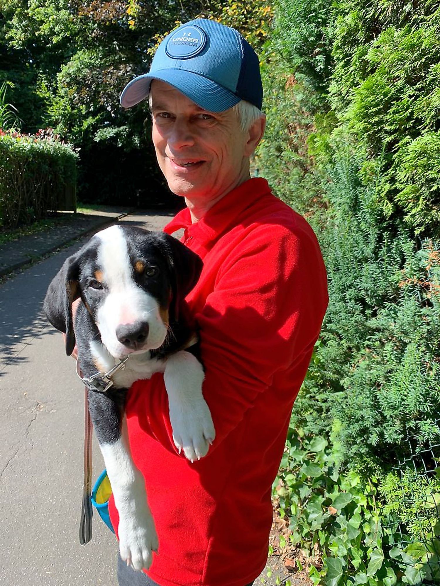 Ihr ausgeprägter Bezug zu „ihren Menschen“ macht Schweizer Sennenhunde zu loyalen Familienhunden. Willi ist bei uns mittendrin, liebt Nähe und ist immer bereit für gemeinsame Abenteuer.